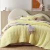 Woven gauze bedding composed of two thin layers of cotton woven together by invisible stitches at regular intervals, giving it a light airy feel